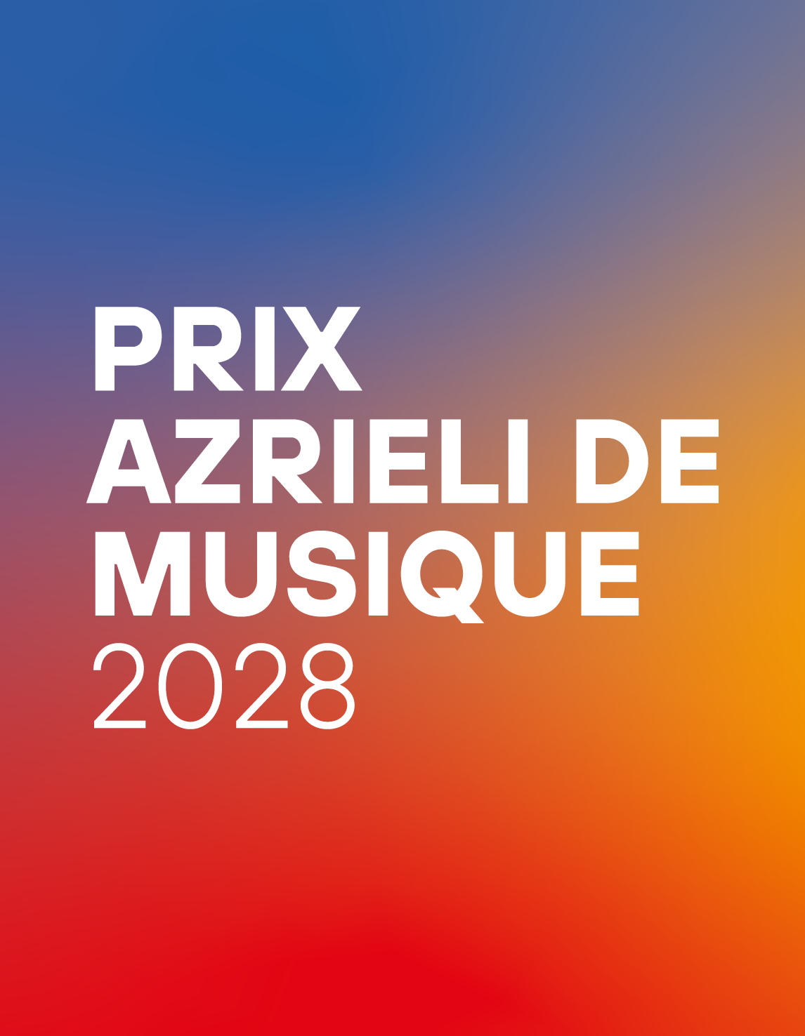 Créés en 2014 par Sharon Azrieli, CQ, pour la Fondation Azrieli, les Prix Azrieli de musique (PAM) offrent des occasions de découvrir, de créer, d’interpréter et de célébrer l’excellence en matière de composition musicale. Pour l’édition 2028, trois prix sont décernés pour la musique de chambre : La Commande Azrieli de musique juive, La Commande Azrieli de musique canadienne, et La Commande Azrieli de musique internationale.